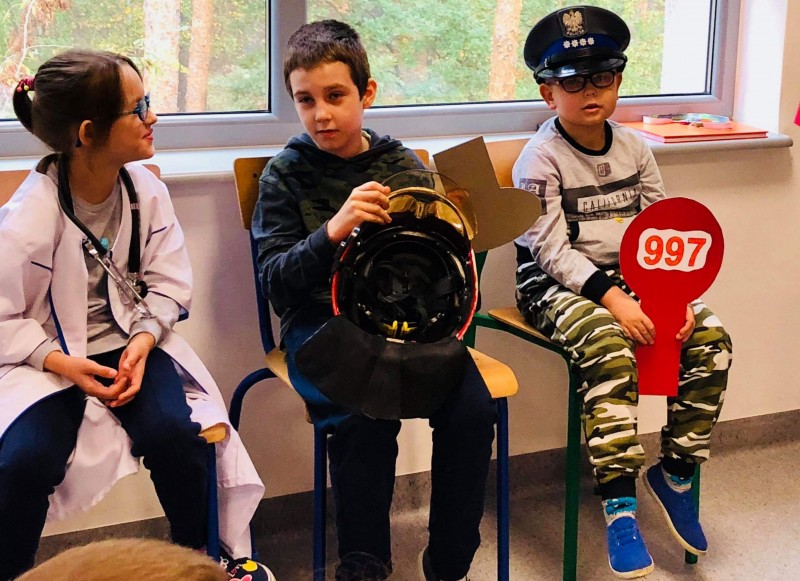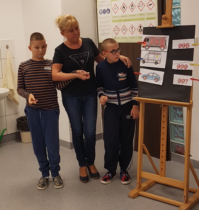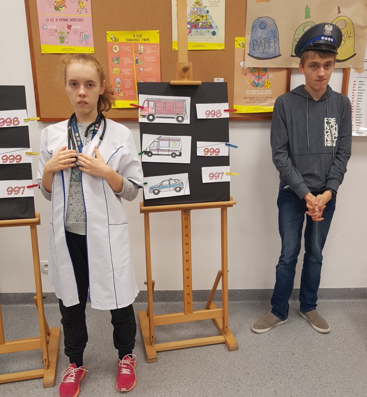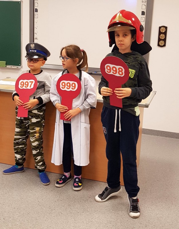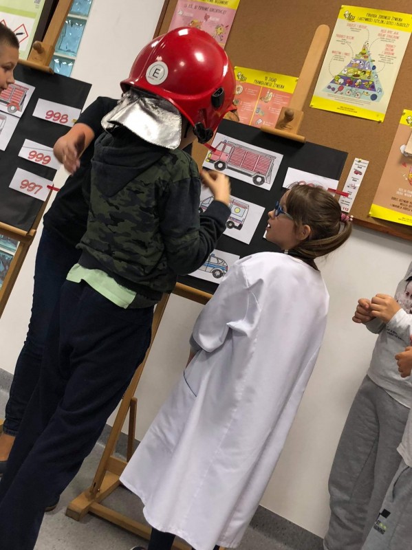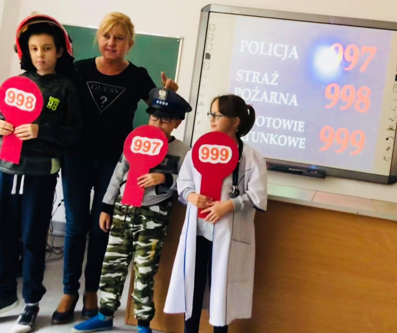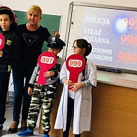 „Halo, wzywam pomoc – numery alarmowe” to temat kolejnego spotkania, w którym 19 października 2018r uczestniczyli najmłodsi uczniowie Zespołu Szkół w Goleniowie. Sierżant Poli, bohater projektu „Bezpieczne zachowania” przypomniał uczniom jak należy się zachować, gdy jesteśmy świadkami niebezpiecznego zdarzenia, lub sami potrzebujemy pomocy. Były filmy edukacyjne przedstawiające działania służb ratowniczych, piosenki utrwalające ważne numery alarmowe, a także działania praktyczne uczniów, które nadzorowali szkolni przedstawiciele służb ratowniczych. Na zakończenie spotkania każdy uczeń otrzymał kartę pracy - Numery alarmowe. Nad prawidłowym przebiegiem spotkania czuwała pani Dorota Baczewska.