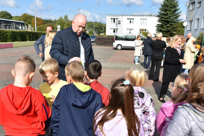 Staroście i Wójtowi towarzyszyła Dyrekcja Szkoły oraz Krzysztof Maćczak z Wydziału Prewencji Komendy Powiatowej Policji w Goleniowie, któremu dziękujemy za koordynację wydarzenia.