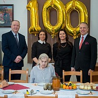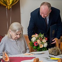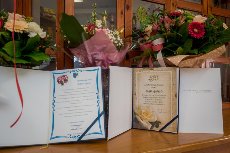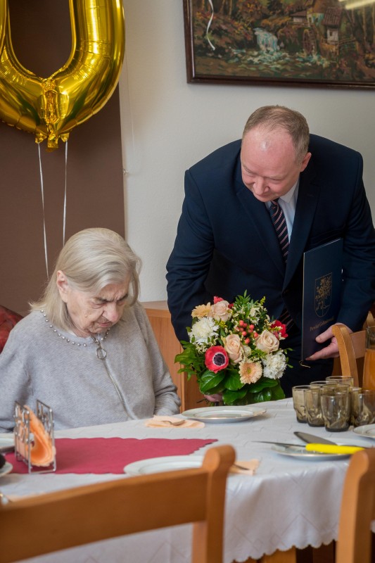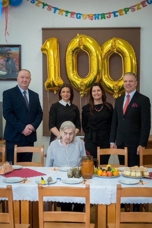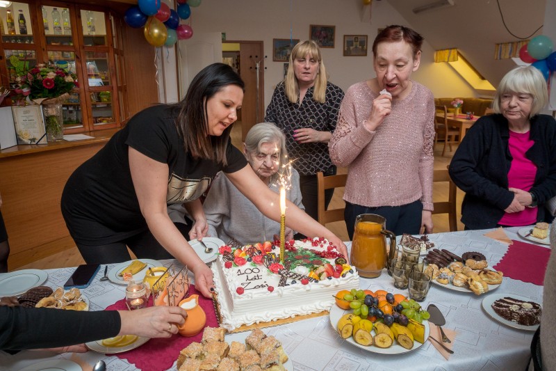 W dniu 5 marca 2020 r. w Domu Pomocy Społecznej w Nowogardzie Pani Zofia Gajdzis obchodziła 100-tne urodziny. Ten piękny jubileusz był okazją do życzeń od Dyrekcji Domu Pani Igi Błażewicz i Małgorzaty Danilewskiej, Starosty Pana Tomasza Stanisławskiego, Burmistrza Nowogardu Pana Roberta Czapli oraz koleżanek. Mieszkanka Pani Grażyna, wręczyła kartkę urodzinową wykonaną własnoręcznie wraz z wierszem napisanym specjalnie na tą okazję. Pani Zofia zamieszkuje w naszym Domu od 2014r., urodziła się 04 marca 1920r. we wsi Milkuny dawny Związek Radziecki obecnie terytorium Łotwy. Wszyscy obecni życzyli pani Zofii 200 lat. Niech każda chwila będzie dla Pani źródłem szczęścia, upływa w zdrowiu i spokoju.