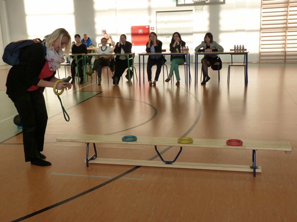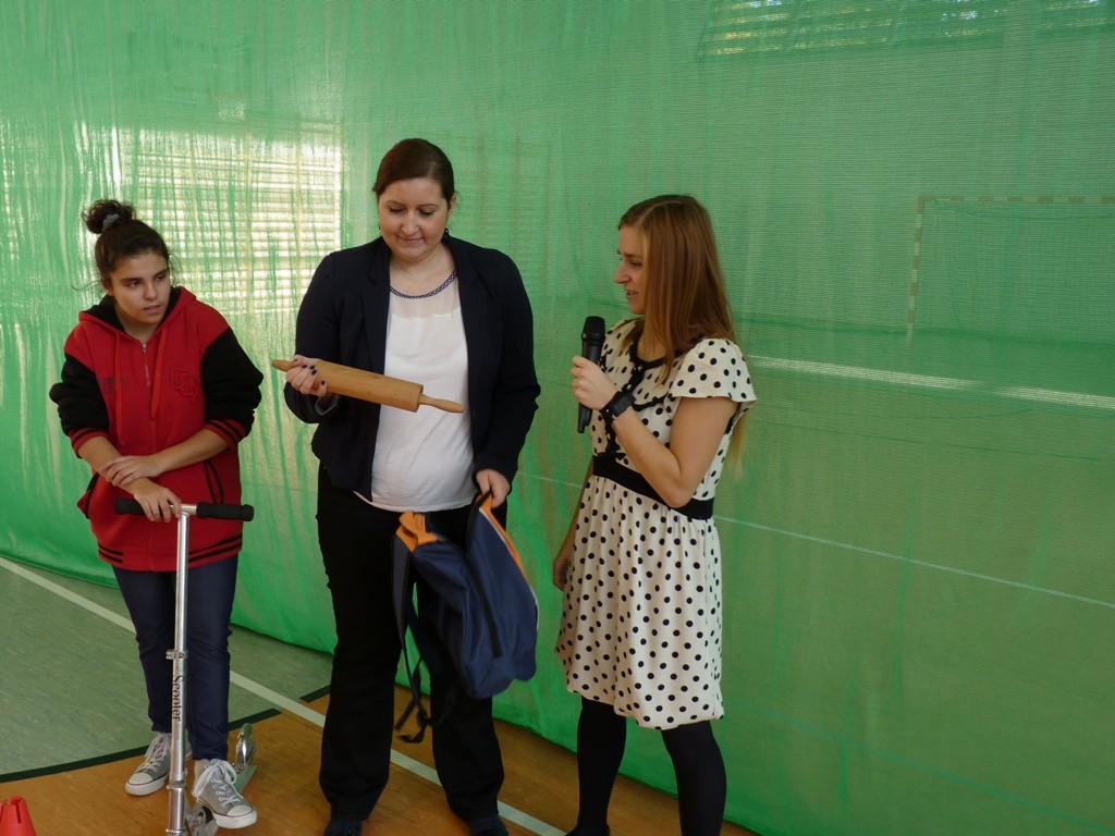 Chociaż za oknem pełną parą trwa jesień, to chandra ominęła nas szerokim łukiem! Szczególnie, że 14 października obchodziliśmy Dzień Edukacji Narodowej. To wyjątkowe święto, w naszej szkole przebiegło naprawdę… wyjątkowo! Szereg atrakcji otworzyły Otrzęsiny dla nowych nauczycieli. W tym dniu role się zamieniły i zaprosiliśmy ich do szkolnej ławy, gdzie czekały nie lada zadania! Pokonanie toru przeszkód na hulajnodze, namalowanie z zamkniętymi oczami portretu p. Dyrektor, zatańczenie układu choreograficznego z pomponami. A wszystkie zmagania i wysiłki nowicjuszy oceniało jury złożone ze specjalistów! Nic nie umknęło ich uwadze i bystremu oku! Egzamin na pełnoprawnego członka szkolnej społeczności wszyscy zdali z wynikiem pozytywnym! Następnie rozegraliśmy międzyklasową FAMILIADĘ! Zaangażowanie uczestników i rodzinna atmosfera nie ustępowały tej telewizyjnej! Po raz kolejny udowodniliśmy, że u nas nie można się nudzić!