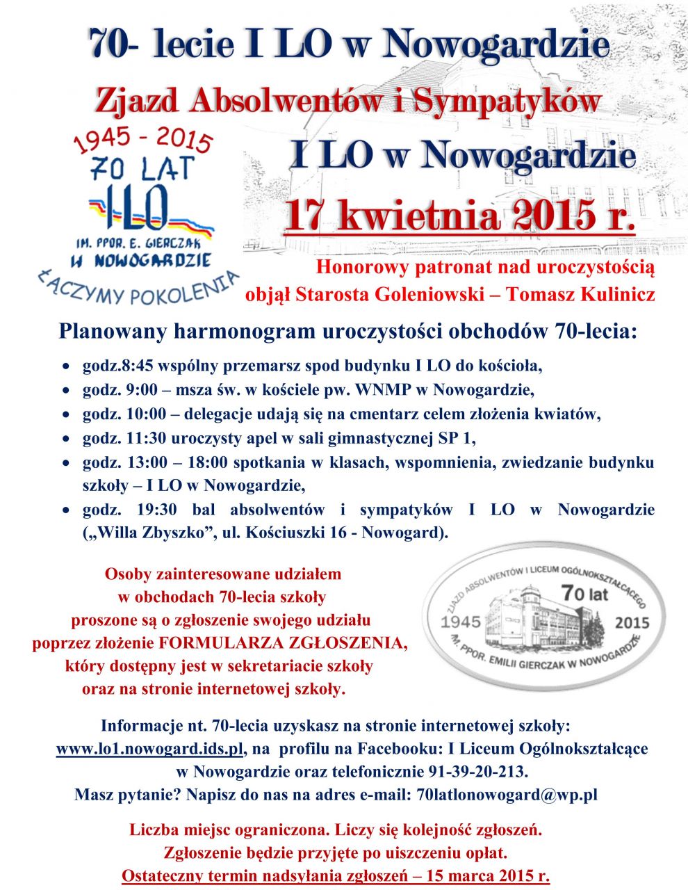 17 marca, na miesiąc przed uroczystościami związanymi z 70-leciem I LO w Nowogardzie, Starosta Goleniowski Tomasz Kulinicz spotkał się z dyrektorem I Liceum Ogólnokształcącego Kariną Surmą.