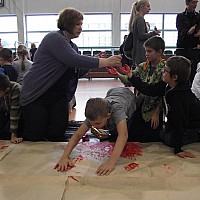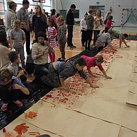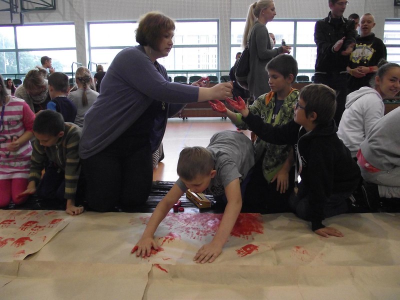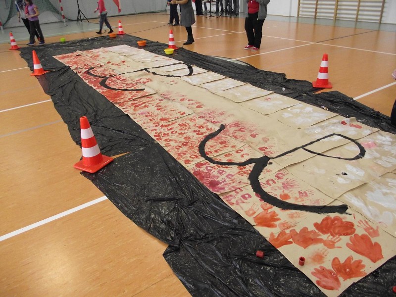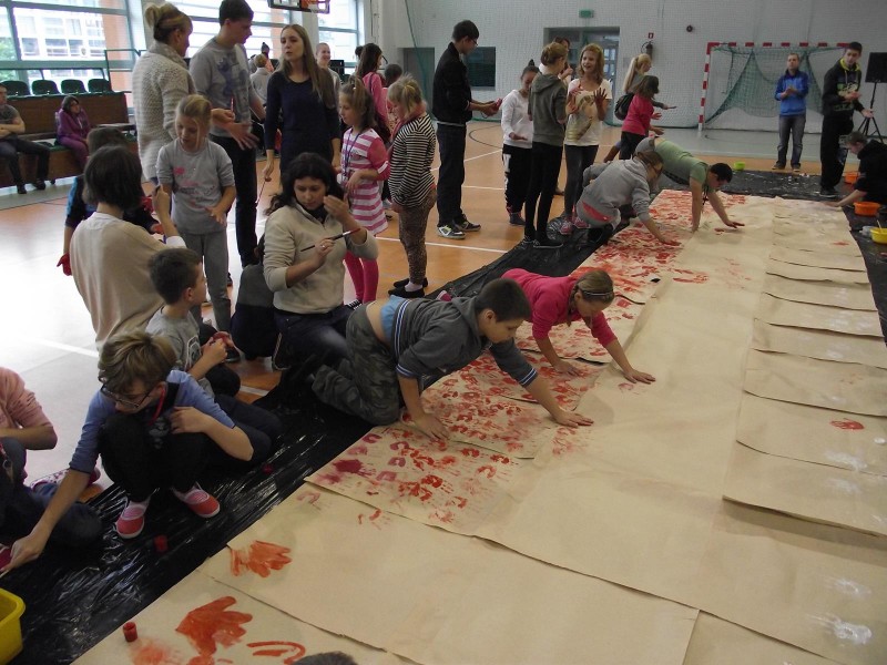 Wszyscy uczniowie brali udział w zajęciach muzycznych, gdzie śpiewali piosenki powstańcze. Uwieńczeniem akcji było wykonanie przez całą społeczność szkolną wielkiej flagi Polski oraz znaku Polski Walczącej, używając do tego farb i własnych dłoni.