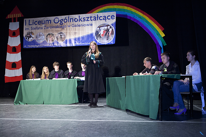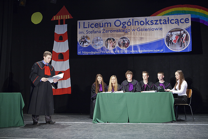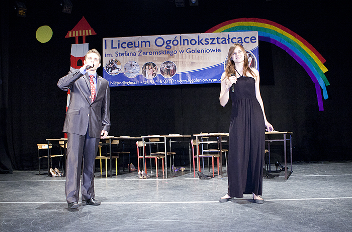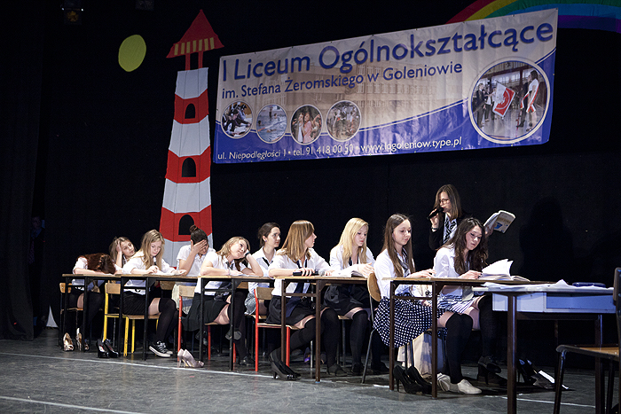 W czwartek, 21 czerwca 2012r. uczniowie Zespołu Szkół Ponadgimnazjalnych I Liceum Ogólnokształcącego im. Stefana Żeromskiego w Goleniowie zaprezentowali uczniom gimnazjów z Goleniowa i Klinisk Wielkich, a także ze Szkoły Podstawowej z Oddziałami Integracyjnymi nr 2 im. Henryka Sienkiewicza w Goleniowie swoje umiejętności twórcze i artystyczne, a także zainteresowania i pasje. W zapełnionej do ostatniego miejsca, sali Goleniowskiego Domu Kultury można było posłuchać piosenek w wykonaniu uczniów liceum m.in. Anny Rynkiewicz, Grzegorza Goryniaka, Doroty Nowakowskiej oraz Marcina Kasperka - ubiegłorocznego absolwenta liceum, obecnie studenta Akademii Sztuki w Szczecinie. Dużym zainteresowaniem publiczności cieszył się także spektakl słowno – taneczny „Z życia naszej szkoły” w choreografii uczennicy liceum - Martyny Łapaj, przygotowany pod kierunkiem Anny Kasperek oraz teledysk „Ponad” z autorską piosenką tegorocznego absolwenta liceum - Adriana Wnuka.