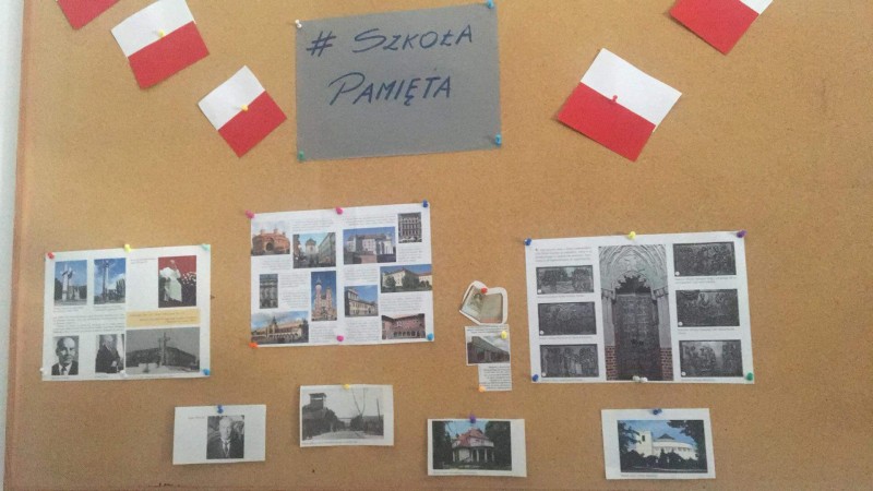 Już po raz kolejny Zespół Szkół przyłączył się do akcji # Szkoła Pamięta. W ramach akcji nasi uczniowie podejmowali szereg działań związanych z miejscami pamięci, ważnymi osobami oraz nawiązujących do polskiej tradycji świąt zadusznych. Wielu uczniów wraz z wychowawcami odbyło lokalne wycieczki odwiedzając miejsca pamięci ważne dla miejscowej ludności i poznając historie z nimi związane. Ponadto uczniowie udali się na miejscowy cmentarz gdzie pomogli uporządkować groby opuszczone i zaniedbane, uczestniczyli w zajęciach tematycznych dotyczących dnia zadusznego, przygotowali prace plastyczne i gazetki, związane z powyższym tematem. Uczniowie klas 7 i 8 przygotowali gazetkę nt. Józefa Piłsudskiego i jego zasług dla Polski oraz zagospodarowali gabloty szkolne rewitalizując eksponaty historyczne i pamiątki rodzinne.