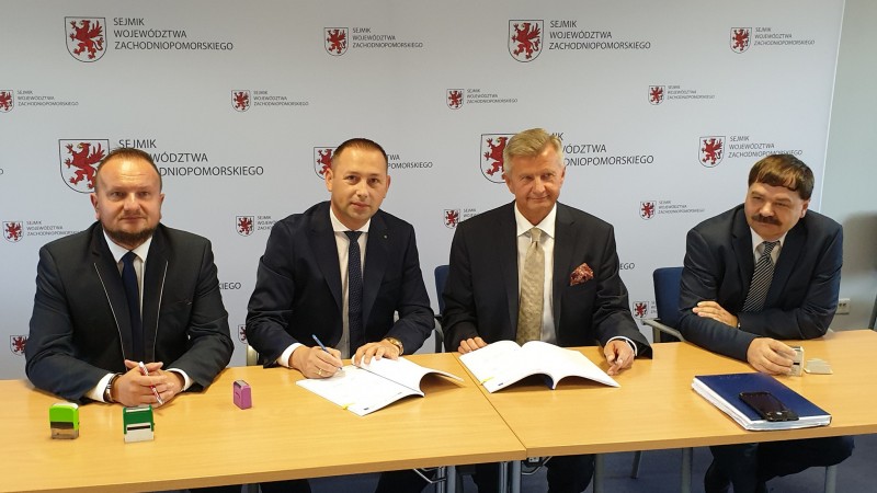 We wtorek 20 sierpnia 2019 r. Wicestarosta Goleniowski Tomasz Kulinicz oraz Członek Zarządu Bogusław Zaborowski podpisali w siedzibie Sejmiku Województwa Zachodniopomorskiego umowę w ramach „Budowy Regionalnej Infrastruktury Informacji Przestrzennej Województwa Zachodniopomorskiego". Wartość całego zadania wynosi ponad 56.000.000 złotych.
