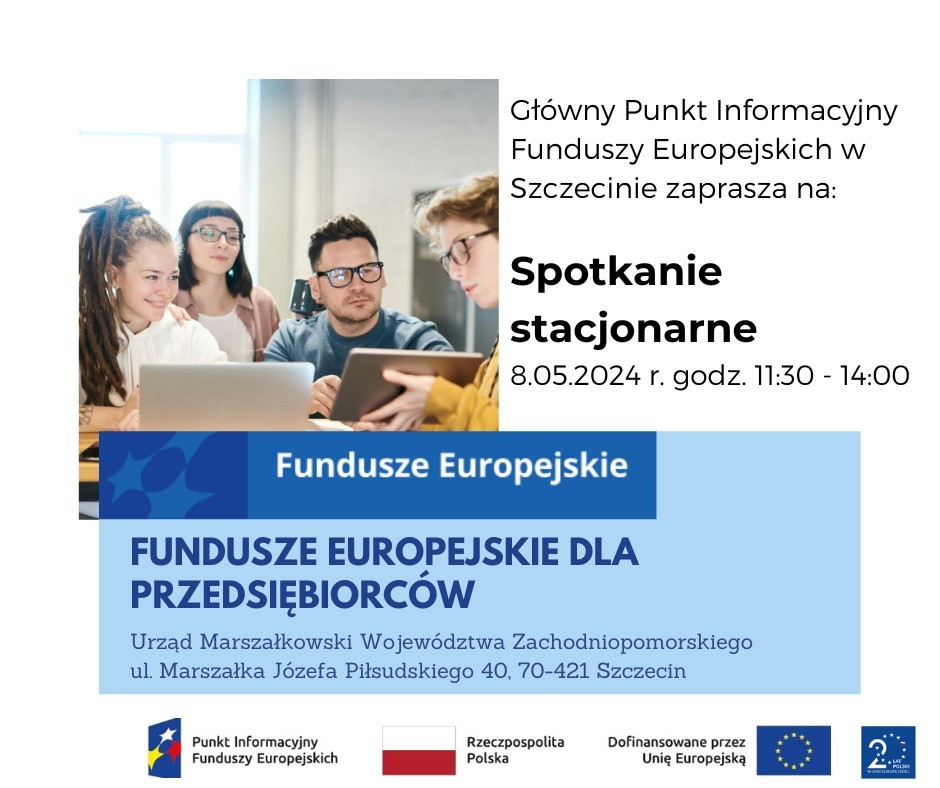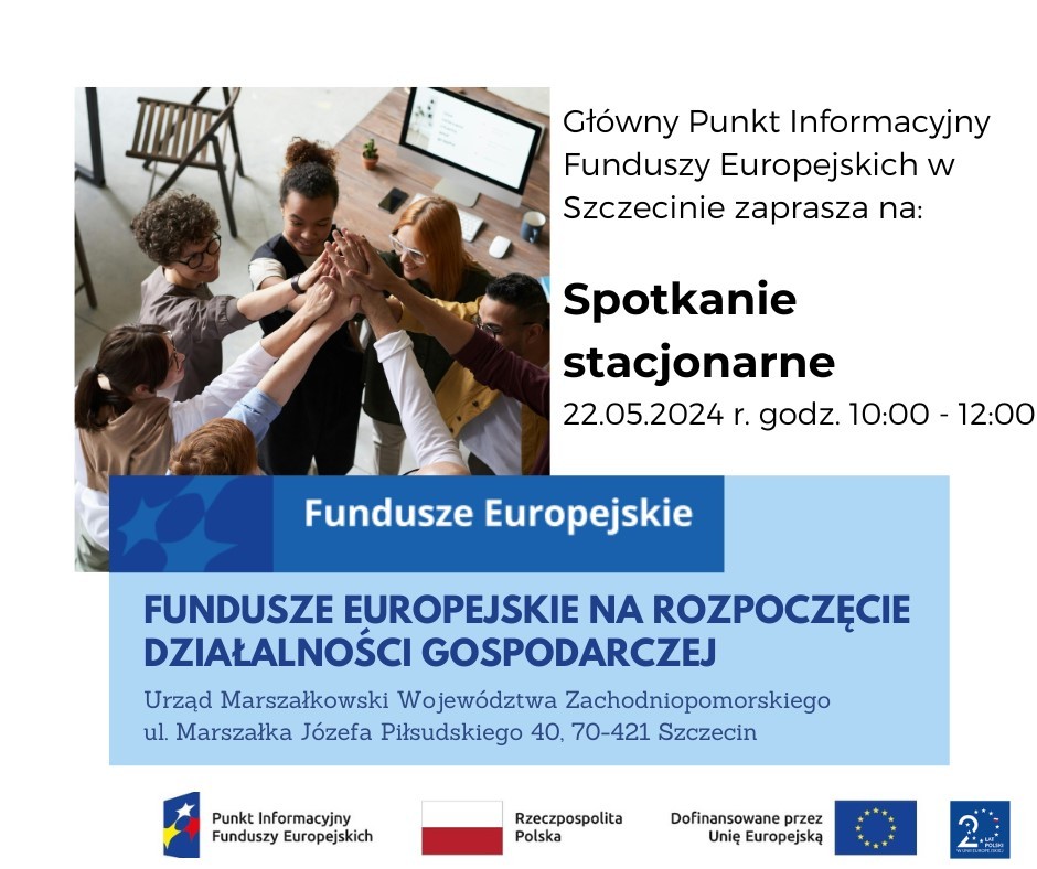 Szanowni Państwo, z okazji 20 lat Polski w Unii Europejskiej Główny Punkt Informacyjny Funduszy Europejskich w Szczecinie wraz z partnerami zaprasza na cykl bezpłatnych stacjonarnych spotkań informacyjnych: