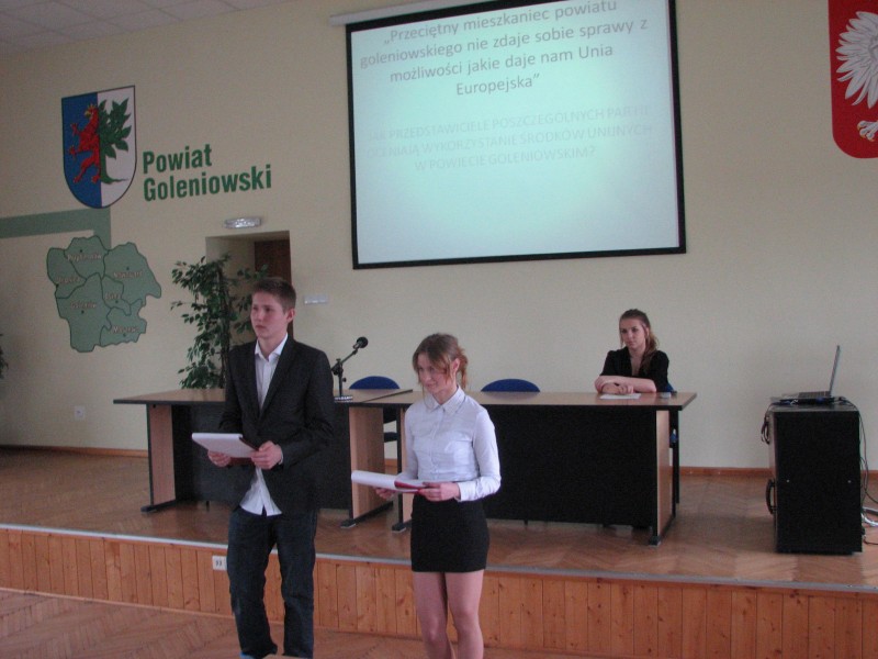 Nasi goście odpowiadali na pytania moderatorów, które dotyczyły rozwoju powiatu goleniowskiego oraz jego modernizacji. Debata poruszała kwestie świadomości mieszkańców powiatu goleniowskiego na temat możliwości jakie daje nam Unia Europejska. Wnioski, które udało nam się wyciągnąć dotyczyły nie tylko kwestii ogólnych, takich jak swobodne podróżowanie po krajach należących do Unii Europejskiej czy odrestaurowywanie zabytków. Nasi goście skupiali się przede wszystkim na tym, co zyskał i zyska powiat goleniowski w najbliższych latach, a są to m.in. najnowocześniejsza w powiecie Szkoła Specjalna, wybudowany nowy most, dzięki któremu zmniejszono natężenie ruchu w centrum Goleniowa, umożliwiając tym samym szybszy wyjazd z miasta. Zwrócono także uwagę na nowopowstałe miejsca pracy, dotacje dla rolników i inne.