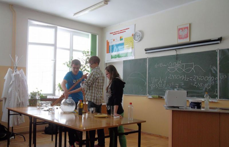Dwuosobowe zespoły klas: IIIA, IIA, IIB, IIC, ID oraz IE uczestniczyły w konkursie chemicznym „Parada oszustów”. Konkurs przygotowali i przeprowadzili uczniowie klasy IIID: Alina Bogusławska, Monika Podczaska, Wojciech Lewandowski, Marta Deka i Agnieszka Płóciennik. Niezwykłą wiedzą z zakresu chemii wykazali się uczniowie z klasy ID: Magdalena Pietrzyk, Kacper Greczan, z klasy IIA: Maciej Lewczuk, Damian Szczęsny oraz Łukasz Małachowski z klasy IID i Katarzyna Kłębowska z klasy IE uzyskując najwyższe noty. Podczas Dni Fizyki i Chemii uczniowie wykonywali doświadczenia chemiczne i fizyczne. Bardzo efektowne były to pokazy, w których badali prędkość światła, napięcie powierzchniowe, właściwości CO2, wybuchł wulkan chemiczny, a gumowy miś ryczał i świecił w probówce