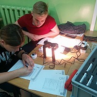 Na zajęciach z Odnawialnych Źródeł Energii uczniowie wyznaczali wydajność panelu fotowoltaicznego w zależności od zacienienia. Wspólnie szukaliśmy metod oszczędzania energii elektrycznej w gospodarstwach domowych.