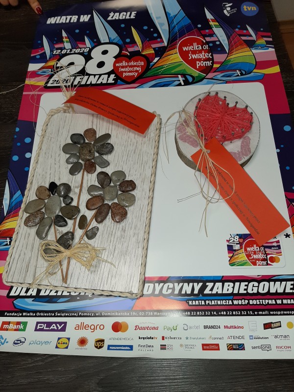Prace zostały wykonane w ramach terapii zajęciowych przez mieszkańców Domu i będąwystawione na aukcji Wielkiej Orkiestry Świątecznej Pomocy, której finał już w najbliższą niedzielę tj. 12 stycznia 2020r. Chcemy wesprzeć WOŚP na zakup najnowocześniejszych urządzeń dla ratowania życia i zdrowia dzieci potrzebujących różnego rodzaju operacji. Zapraszamy do udziału w aukcji. Mieszkańcy, Personel i Dyrekcja Domu Pomocy Społecznej w Nowogardzie.