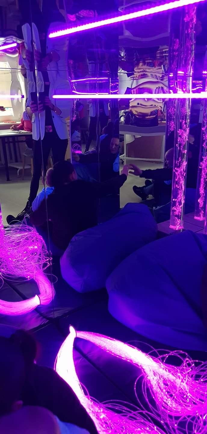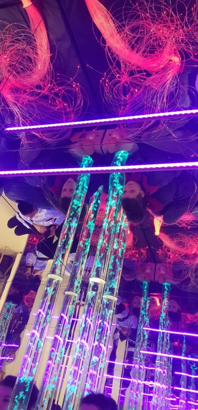 To specjalnie wyodrębnione pomieszczenie, wyposażone w różnorodne urządzenia stymulujące rozwój zmysłów. Głównym celem organizowania tego typu sal jest stwarzanie możliwości odbierania nowych bodźców, poznanie i doświadczanie świata przez zmysły, wzbogacanie doświadczeń oraz miłe spędzanie czasu w atmosferze pełnej relaksu przez osoby z wieloraką niepełnosprawnością. Domek lustrzany jest jednym z podstawowych urządzeń terapeutycznych w Sali Doświadczania Świata. Daje efekt nieskończonej przestrzeni.
