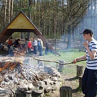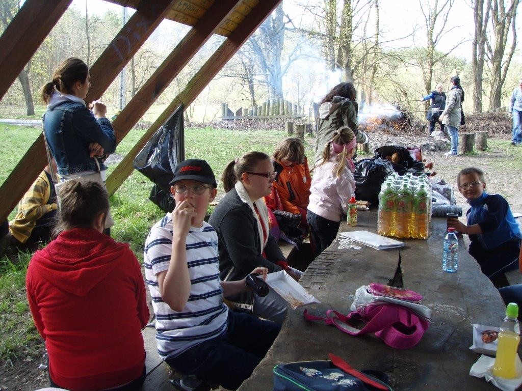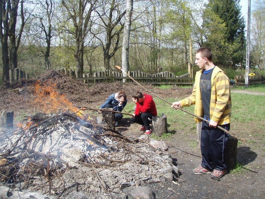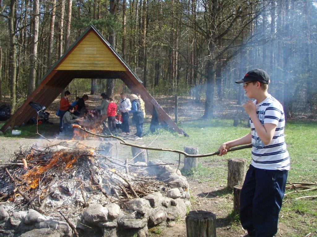 Celem zajęć było poznanie zwierząt i ich przystosowań do życia w środowisku leśnym, poznanie formy ochrony przyrody, jaką są parki narodowe, rozbudzenie u uczniów potrzeby kontaktu z przyrodą, kształtowanie poczucia odpowiedzialności za środowisko przyrodnicze, w którym żyjemy. Zajęcia rozpoczęliśmy od porządkowania parkingu leśnego - tzw. pola biwakowego, które miało nam posłużyć za miejsce zbiórki i teren przygotowania ogniska. Następnie uczniowie w kilkuosobowych grupach wraz z opiekunami pokonywali trasę rajdu i wykonywali zlecone zadania zatrzymując się na wyznaczonych przystankach. Na każda grupę, po powrocie na miejsce zbiórki, czekały gorące kiełbaski.