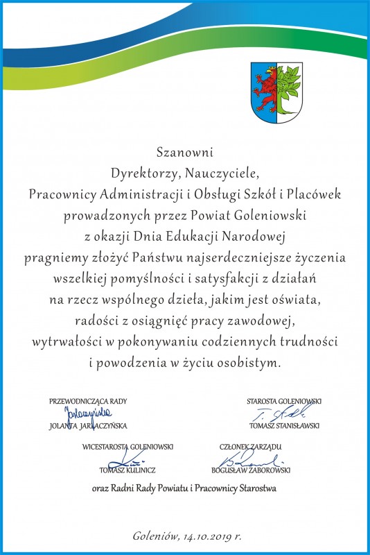 Informacja o stanie realizacji zadań oświatowych Powiatu Goleniowskiego w roku szkolnym 2018/2019