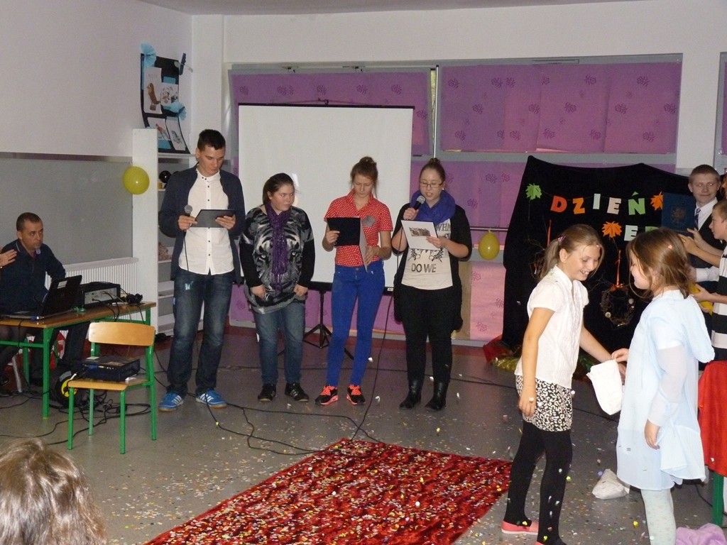 Obchody Dnia Edukacji Narodowej, w tym roku odbyły się w formie gali oscarowej, na której wręczane były oscary, dla nauczycieli w wymyślonych prze uczniów kategoriach. Galę prowadzili uczniowie: Tomasz Koksa i Rafał Lieder wspomagani przez Panią Pauline Gwardiak.