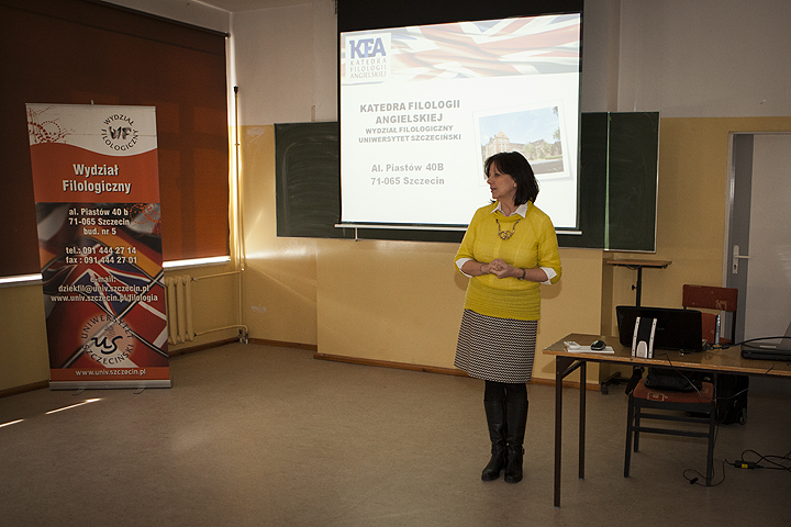 Podczas gdy grupa młodzieży uczestniczyła w konkursach językowych uczniowie liceum wzięli udział w spotkaniu z jego ubiegłoroczną absolwentką - Lidią Baszak na temat studiowania w Wielkiej Brytanii oraz studiowania na Wydziale Filologii Angielskiej Uniwersytetu Szczecińskiego przygotowanego przez Kierownika Katedry Filologii Angielskiej - dr Annę Gonerko-Frej. Dużym zainteresowaniem uczestników cieszył się także wykład drugiego pracownika naukowego tej Katedry - mgr Tomasza Obiały, również absolwenta goleniowskiego liceum, na temat napisów pod filmami animowanymi na przykładzie „Shreka”.