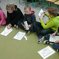 W uroczystościach wzięły udział klasy: I-IIIa, IIa, IIb, IIIc, IVc, IVbc, IV-VIb. Pomagali uczniowie klas I-III gimnazjum B.