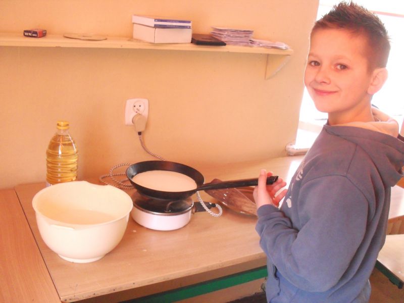 Tego dnia słodki zapach rozpływał się po wszystkich zakamarkach szkoły. Nie było osoby, która przeszłaby obojętnie obok stoiska z naleśnikami. Tym razem uleganie pokusie miało szczytny cel! - „Naleśnika zajadasz - innym pomagasz!”. To już nasza druga akcja charytatywna. Wszystkim łasuchom, którzy przyczynili się do napełnienia skarbonki - dziękujemy!