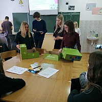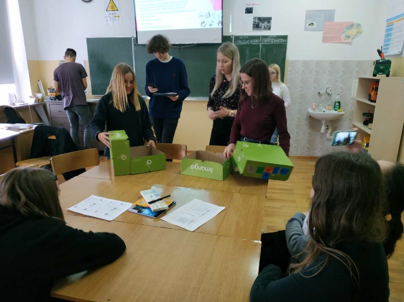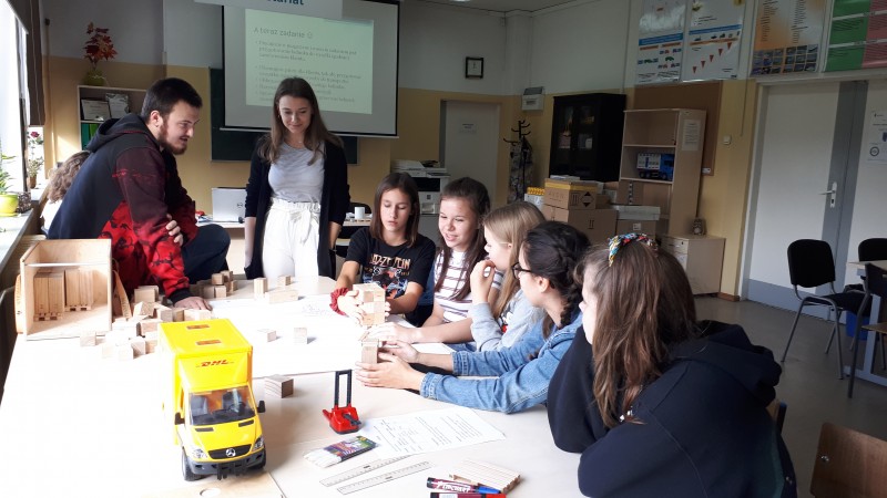 Uczniowie mieli możliwość sami zaprojektować opakowanie i odpowiednio je oznakować, tak, aby sprawnie manipulować towarem w trakcie transportu i przechowywania. W drugim bloku tematycznym uczniowie zapoznawali się z zasadami prawidłowego formowania ładunków na paletach oraz rozmieszczania uformowanych ładunków w naczepie transportowej. Warsztaty były prowadzone przez uczniów z klasy 4 technikum.