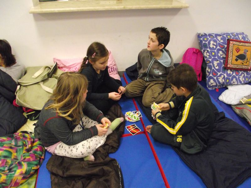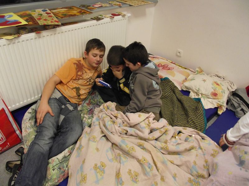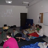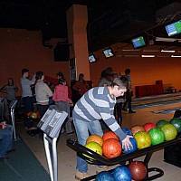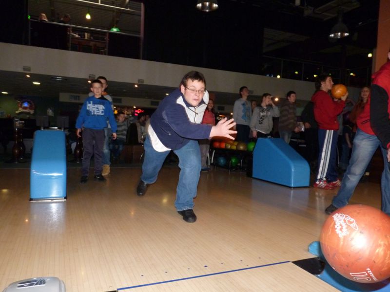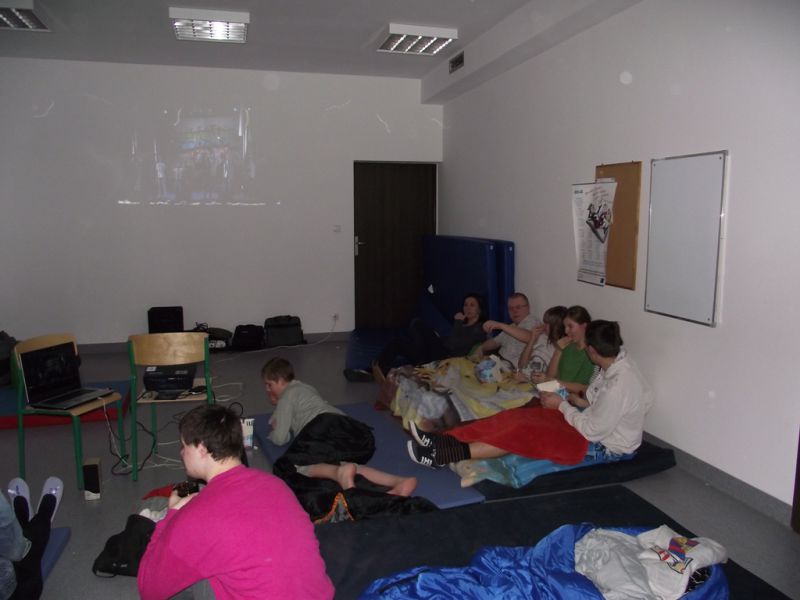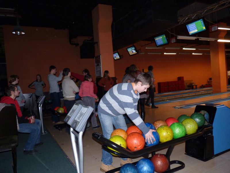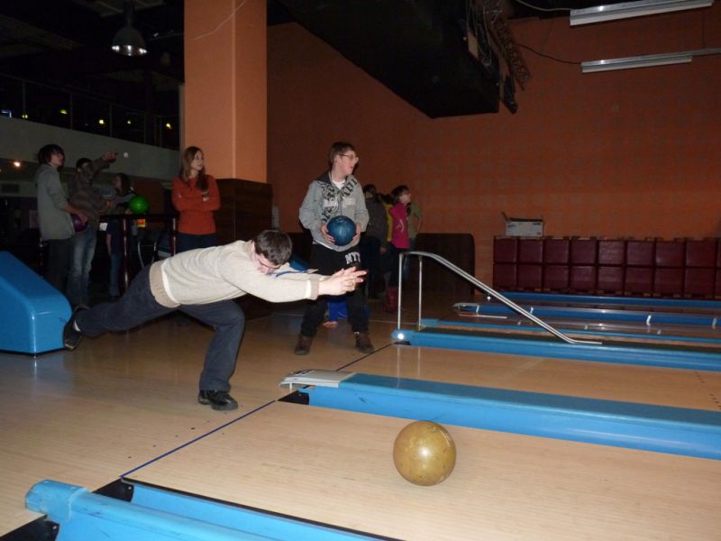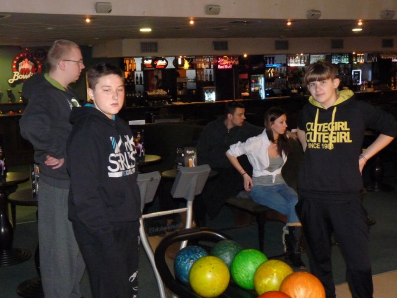 W środę podążaliśmy śladami Freda Flinstona i wylądowaliśmy na kręgielni w Szczecinie. W tej roli wystąpiliśmy jako debiutanci. Pełni dobrych humorów, lepszych i gorszych wyników w strącaniu kręgli, udaliśmy się do Mc’Donald’sa, by uzupełnić kalorie. W czwartek znaleźliśmy się na superszybkiej „Zimowej Karuzeli Wrażeń”! Tego dnia nadeszła długo oczekiwana nocka w szkole! O 21 p. Dyrektor przygotowała niespodziankę dla swoich „nocnych marków”. Mieliśmy okazję podziwiać zapierający dech w piersiach pokaz fajerwerków! Uzbrojeni w śpiwory, poduszki, film z naszego koncertu oraz gigantyczne ilości popcornu zamieniliśmy naszą jadalnię na sypialnię. Jednak nikt nie myślał o takich przyziemnych rzeczach jak sen…. Tu się dopiero działo!