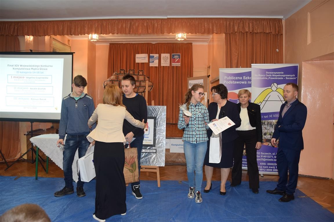 28 marca reprezentanci SOSW w Nowogardzie wzięli udział w finale Wojewódzkiego Konkursu Internetowa Mądra Głowa. Organizatorem konkursu jest Publiczna Szkoła Podstawowa Specjalna nr 25 w Szczecinie. Nasi przedstawiciele w grupie wiekowej 14-16 lat byli bezkonkurencyjni. Angelika Czaprowska zajęła I miejsce a Serafin Grzelak II miejsce. Gratulujemy zwycięzcom a organizatorom dziękujemy za wspaniałą atmosferę.