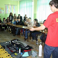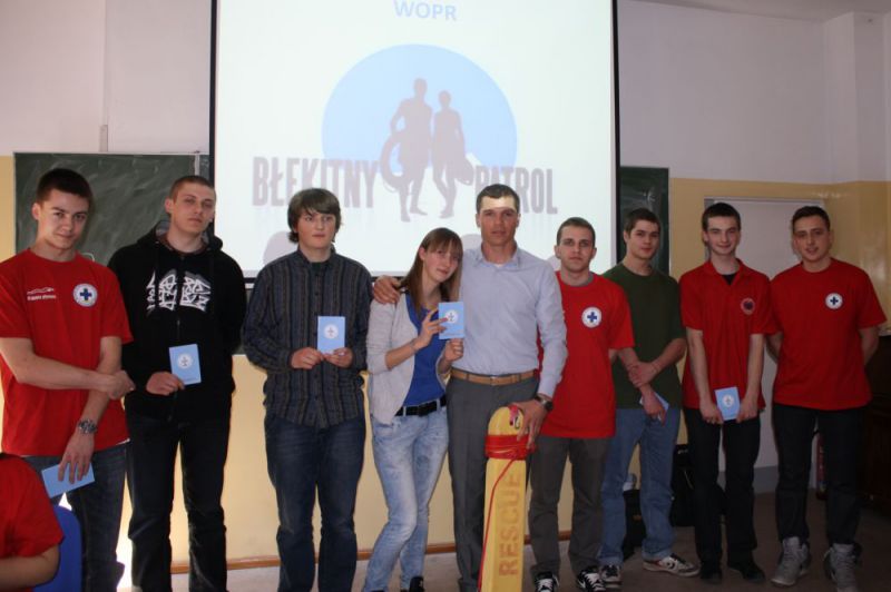 W ramach prowadzonej przez Zespół Szkół Ponadgimnazjalnych w Goleniowie współpracy z Powiatowym Oddziałem Wodnego Ochotniczego Pogotowia Ratunkowego uczniowie liceum uczestniczyli w programie ,,Błękitny Patrol”. Realizując program ratownicy WOPR - uczniowie goleniowskiego liceum, uczyli swoich młodszych kolegów i koleżanki ze szkół podstawowych i gimnazjów z terenu Powiatu Goleniowskiego, bezpiecznych zachowań nad wodą oraz zasad udzielania pierwszej pomocy przy użyciu specjalistycznego sprzętu tj. torby R1, deski ortopedycznej oraz resuscytacji na fantomach (dziecko i osoba dorosła). W ramach podsumowania projektu odbyło się także uroczyste wręczenie uprawnień uczniom, którzy podnieśli swoje kwalifikacje ze stopnia Młodszego Ratownika WOPR na stopień Ratownika WOPR.