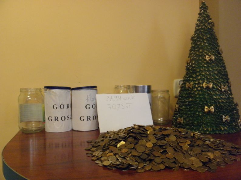 Zebrano 3499 monet po 1,2,5,10,20,50 groszy, co dało 70,73 zł. W przeliczeniu na jednego ucznia wynosi to 23 monety, 48 groszy.