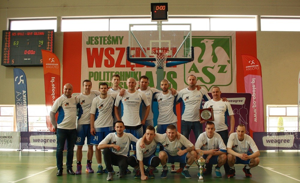 Z kolei gospodarze przed tym spotkaniem liczyli się w walce o awans podobnie jak Truso Elbląg. Warunek musieli spełnić jednak jeden – wygrać z Gryfem. Taki scenariusz spowodował, że drużyna z Elbląga i jej kibice nie wyjechali wcześniej do domów, pozostali na trybunach i postanowili żywiłowo dopingować Gryfa, którego zwycięstwo zapewniało im awans. Walka na całego trwała na parkiecie, a na nim jedynie w pierwszej kwarcie AZS Opole toczył z Gryfem bój jak równy z równym i na krótką przerwę schodził prowadząc jednym punktem. Od drugiej kwarty jednak zaczął się zwycięski marsz Gryfa po trzecie zwycięstwo w turnieju i dziesiąte z rzędu w sezonie. Podopieczni Marcina Zarzecznego wraz z nim samym na boisku pokazali ogromną determinację i wolę zwycięstwa co w połączeniu z umiejętnościami poszczególnych zawodników zaprocentowało zwycięstwem 79:63. Po końcowej syrenie nasi zawodnicy wybiegli na parkiet świętować historyczny awans do II ligi, a do celebracji dołączyła drużyna i kibice Truso Elbląg, którzy dzięki naszemu zwycięstwu dostali się również do II ligi. Celu tego nie osiągnęła ekipa gospodarzy AZS Opole i AZS Kielce. MVP meczu z AZS Opole wybrano Wojciecha Złotego. Do najlepszej „piątki turnieju” trafili także dwaj nasi zawodnicy Marcin Zarzeczny i Wojciech Złoty.