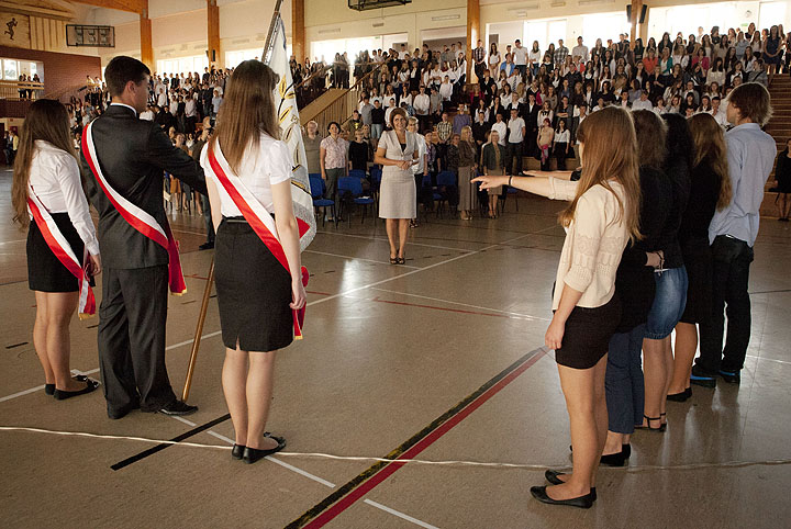 W trakcie uroczystości nastąpiło także oficjalne przyjęcie uczniów klas pierwszych do grona społeczności szkolnej. Uczniowie, którzy w trakcie postępowania rekrutacyjnego otrzymali najwyższą punktację w poszczególnych klasach złożyli ślubowanie na Sztandar Szkoły.