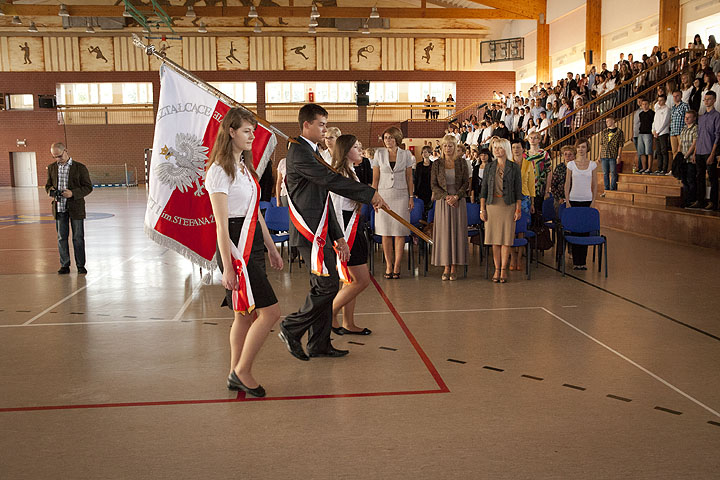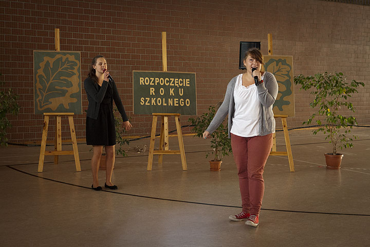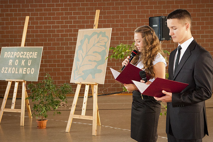 Wszystkich zgromadzonych powitała ciepłymi słowami dyrektor szkoły - Agaty Markowicz –Narękiewicz, która kończąc swoje przemówienie przecięła nożyczkami wstęgę i słowami „niniejszym uznaję rok szkolny 2012/2013 za rozpoczęty” oficjalnie rozpoczęła nowy rok szkolny.