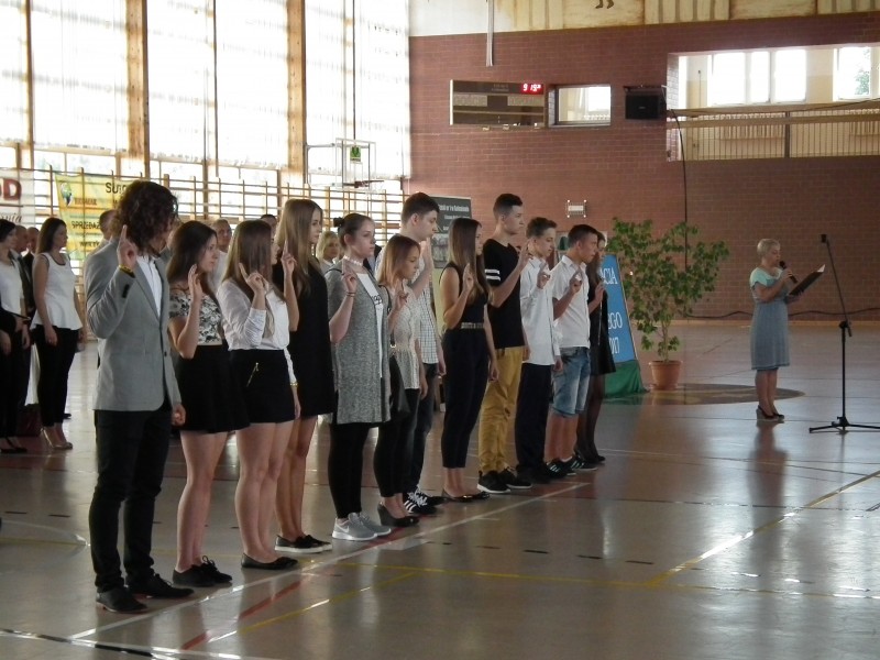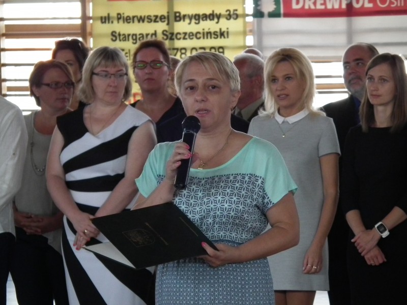 Pani dyrektor Małgorzata Wojtysiak rozpoczęła uroczystość powitaniem przybyłych gości, między innymi Wicestarostę Powiatu Goleniowskiego – Pana Tomasza Stanisławskiego. Z okazji 77 rocznicy wybuchu II Wojny Światowej uczczono minutą ciszy wszystkich poległych za wolność Ojczyzny. Tradycyjnie odbyło się uroczyste przyjęcie uczniów w poczet społeczności uczniowskiej.