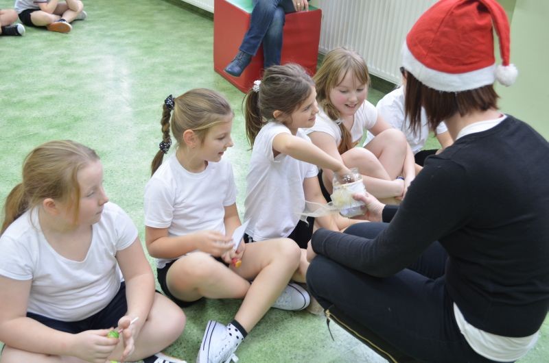 4 grudnia miał miejsce finał akcji szkolnej „gorzko-słodki”. Słodkie lizaki, które zostały zebrane wśród uczniów Zespołu Szkół Ponadgimnazjalnych podczas Dnia Życzliwości (21.11.2014 r.) zostały przekazane dzieciom ze Szkoły Podstawowej nr 2. Sprawiliśmy mikołajkową niespodziankę dzieciom: oddziału przedszkolnego, jednej klasy I i dwóm klasom II. Z wizytą do szkoły udały się uczennice klasy IV TŻ – Patrycja Augustyniak, Paulina Salamon, Adrianna Kowalska, Izabela Strojna (pełniły funkcję Mikołajek) oraz nauczycielki – Pani Ewa Regina Krzak i Pani Katarzyna Kijana.