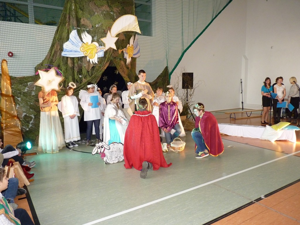 22 grudnia 2015 roku w Zespole Szkół, w Goleniowie przy ulicy Niepodległości 1B zgodnie z tradycją odbyła się wigilia szkolna. Spotkanie wigilijne rozpoczęło się jasełkami przygotowanymi przez uczniów pod czujnym okiem p. Izabeli Stanuch, p. Agaty Januszko i p. Joanny Stanuch-Piotrowicz. W tym tak dla nas ważnym dniu, nie mogło zabraknąć wśród nas zaproszonych gości z powiatu goleniowskiego, z Wydziału Oświaty, Kultury i Sportu p. Izabeli Furmańskiej i p. Urszuli Kaniuk, księdza Proboszcza Rafała Hoczka. Zaproszenie przyjęli również rodzice z Rady Rodziców, którzy swa obecnością zawsze wspierają działania szkoły. Ksiądz Proboszcz Rafał Hoczek złożył wszystkim świąteczne życzenia i zaprosił do symbolicznego podzielenia się opłatkiem z przesłaniem, aby te święta były czasem spokoju, miłości i pojednania.