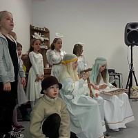 Artyści sami akompaniowali do śpiewanych kolęd na instrumentach perkusyjnych. Gośćmi Przeglądu byli uczniowie klasy II c ze Szkoły Podstawowej z Oddziałami Integracyjnymi nr 2 w Goleniowie wraz ze swoja wychowawczynią Panią Beatą Rucińską, którzy uświetnili ten dzień występem jasełkowym.