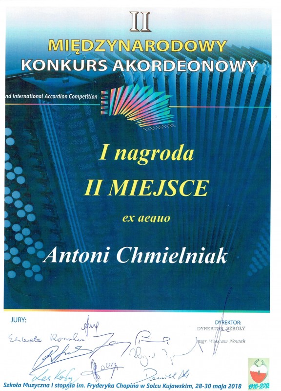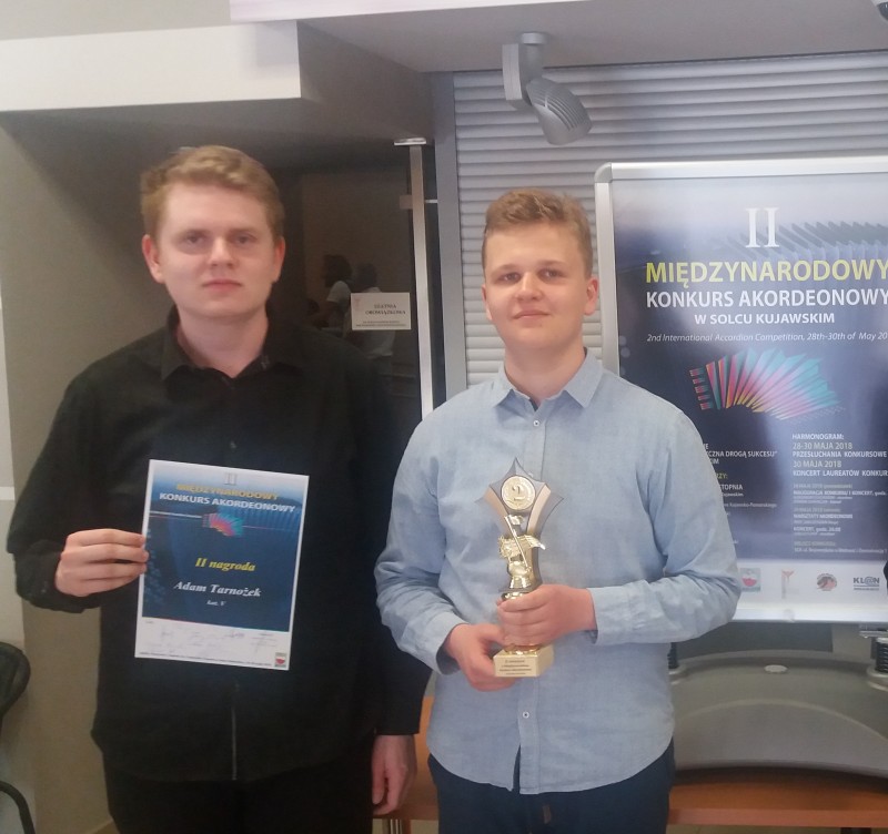 Adam Tarnożek i Antoni Chmielniak zdobyli II miejsca w swoich kategoriach wiekowych podczas II Międzynarodowego Konkursu Akordeonowego w Solcu Kujawskim - w dniach 28 - 30.05.2018 r.