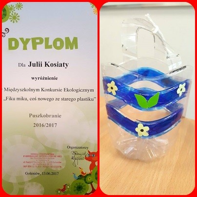 „Fiku miku coś nowego ze starego plastiku” to nazwa konkursu plastycznego organizowanego przez Szkołę Podstawową z Oddziałami Integracyjnymi Nr 2 w Goleniowie. Brali w min udział uczniowie klas 4a/5a/6a Szkoły Podstawowej działającej w Zespole Szkół w Goleniowie. Prace uczniów były bardzo kolorowe i pomysłowe.