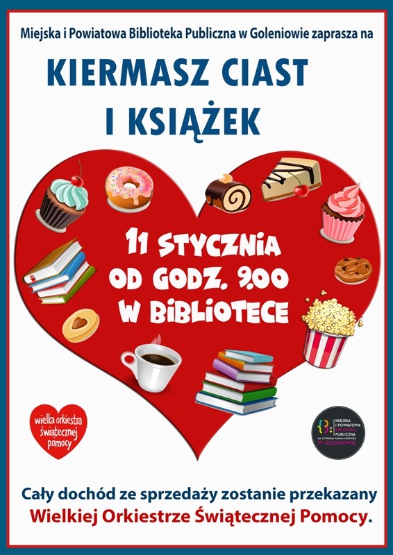 Miejska i Powiatowa Biblioteka Publiczna w Goleniowie zaprasza wszystkich do udziału w akcji „Książka dla WOŚP”. W ramach tej akcji zbierane są książki, które zostaną sprzedane podczas kiermaszu na rzecz 27 Finału Wielkiej Orkiestry Świątecznej Pomocy.