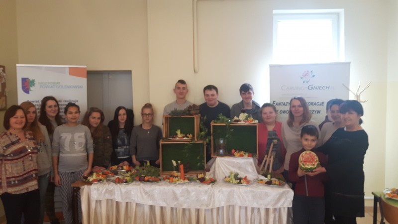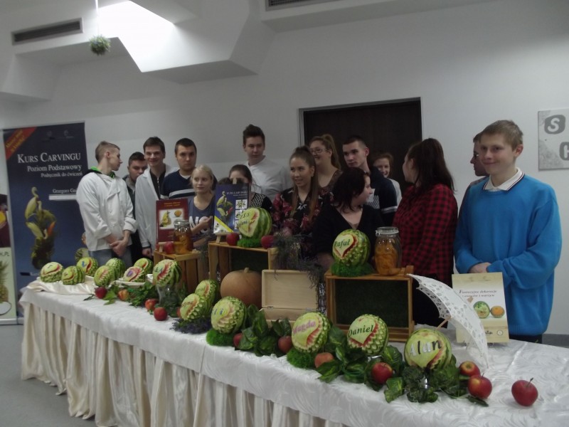 W ramach projektu: Szkoły Powiatu Goleniowskiego drogą dynamicznego rozwoju zawodowego, odbył się kurs carvingu/zdobienia potraw dla uczniów Branżowych Szkół I stopnia w Zespole Szkół w Goleniowie i Ośrodku Szkolno-Wychowawczym w Nowogardzie. Kurs prowadziła firma carving-Gniech z Wejherowa, która złożyła najkorzystniejszą ofertę. W kursie wzięło udział 29 uczniów obu szkół. Uczniowie nabyli umiejętności artystycznego zdobienia potraw oraz tworzenia interesujących kompozycji, zdobywając certyfikaty, przez co podnieśli swoją atrakcyjność na rynku pracy.