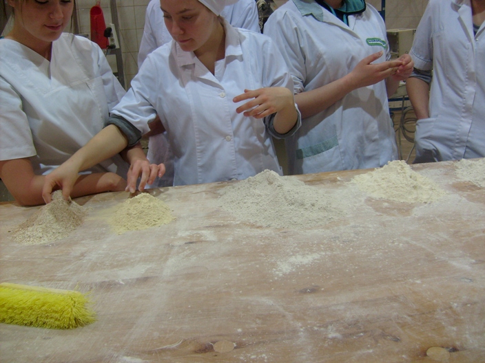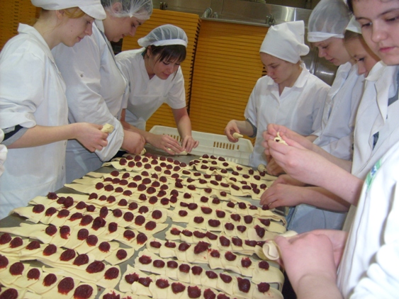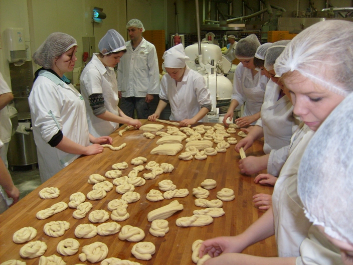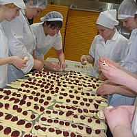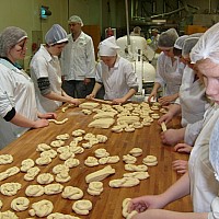 Klasa II Technikum Żywienia i Gospodarstwa Domowego we wtorek 9 kwietnia w ramach zajęć praktycznych odwiedziła Piekarnię „ASPROD” w Kliniskach. Uczniowie obserwowali proces wypieku pieczywa. Zapoznali się z organizacją pracy w zakładzie. Własnoręcznie formowali rogaliki i drożdżówki, które po upieczeniu z apetytem degustowali. Zajęcia bardzo się im podobały – teorię mogli połączyć z praktyką. Ze strony zakładu otrzymali fachowe i wyczerpujące informacje na temat produkcji pieczywa i warunków pracy piekarzy.