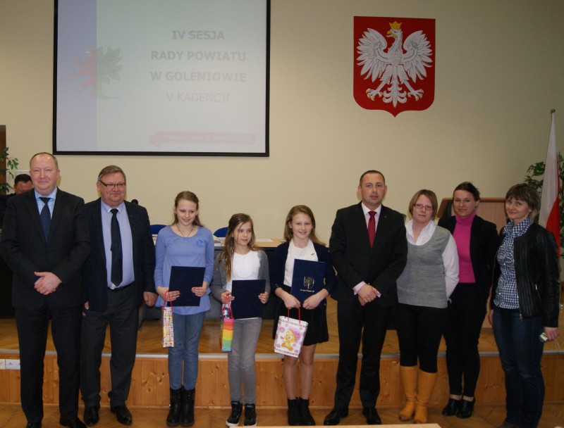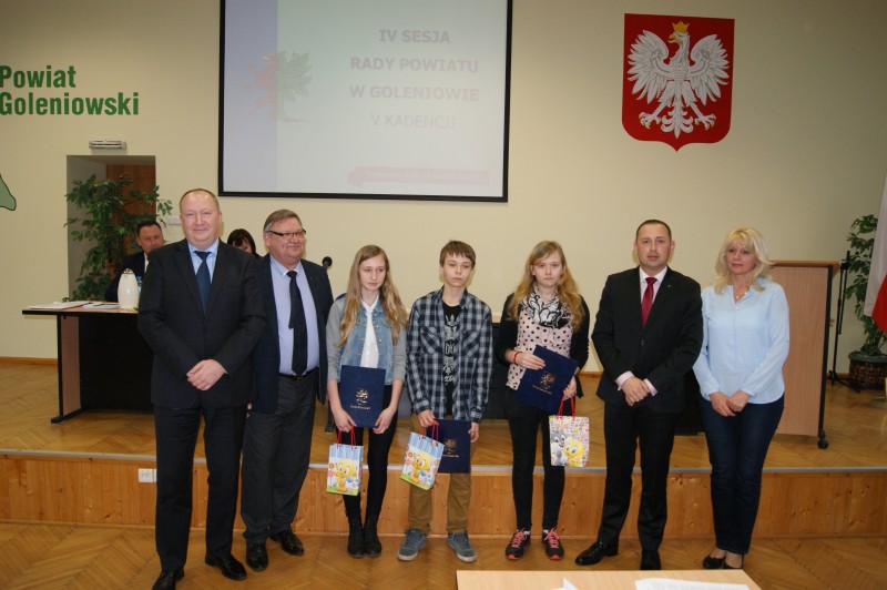 Podczas IV sesji Rady Powiatu w Goleniowie Przewodniczący Kazimierz Ziemba i starostowie Tomasz Kulinicz i Tomasz Stanisławski wręczyli nagrody i wyróżnili laureatów konkursu.