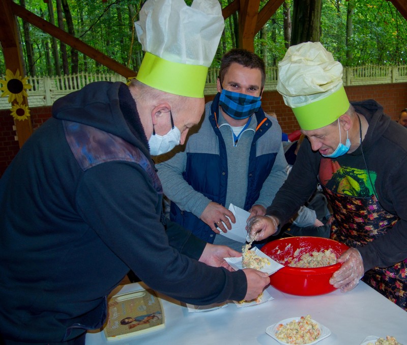 W piątek 16 października 2020r. terapeuci Domu Pomocy Społecznej w Nowogardzie dla mieszkańców przygotowali małe co nie co – I edycja MASTER – CHEFA. Tak zatytułowana była zabawa w przyrządzanie posiłku. Powołano do tego celu Jurorów. Uczestnicy podczas zabawy przygotowali sałatkę. Na zakończenie MASTER – CHEFA były nagrody i wspaniała zabawa oraz oczywiście degustacja.