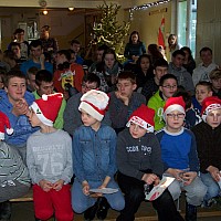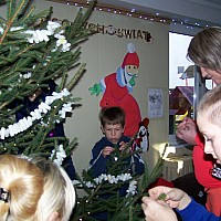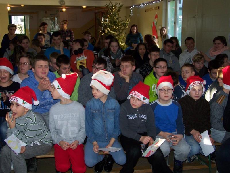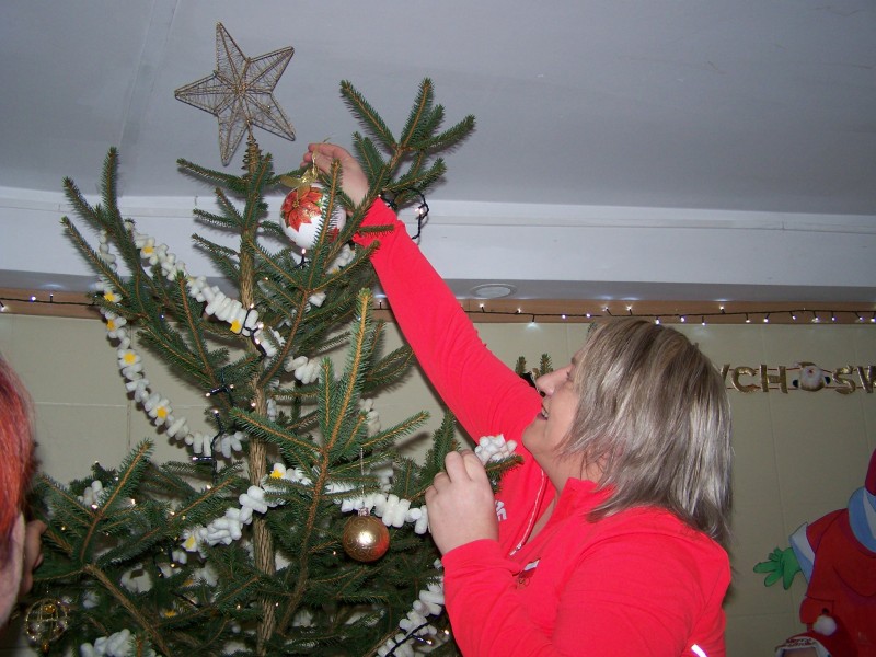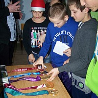 Spotkanie rozpoczęło się od obejrzenia prezentacji multimedialnej o p. Ewie, którą ona sama komentowała. Uczniowie dowiedzieli się ciekawostek o życiu codziennym sportowca. Każdy miał okazję zadać pytanie naszej mistrzyni, a także mógł obejrzeć złote medale, które zrobiły na wszystkich ogromne wrażenie. Pani Ewa chętnie rozdawała autografy i pozowała do zdjęć. Na koniec wspólnie z zaproszonym gościem, przy dźwiękach świątecznych piosenek, dzieci ubrały choinkę. Wszyscy poczuli, że Święta Bożego Narodzenia są już naprawdę blisko.