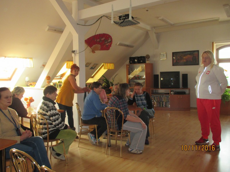 Podczas spotkania mieszkańcy i mieszkanki Domu poznali historię sukcesu sportowego p. Ewy Durskiej, opowiadali również o swoich sportowych sukcesach. Spotkanie odbyło się w bardzo miłej atmosferze, mieszkańcy Domu dzielili się z Mistrzynią olimpijską swoimi wspomnieniami sportowymi. Dużym zainteresowaniem cieszyły się złote medale z Sydney i Londynu, które każdy z uczestników mógł wziąć do ręki. Na zakończenie był wspólny poczęstunek z mieszkańcami i grupą sportową, Dyrektor Domu Pani Lucyna Skałecka–Włodarczyk wręczyła na pamiątkę spotkania pracę wykonaną w ramach terapii zajęciowej, Ewa Durska przekazała mieszkańcom zdjęcia ze swoim wizerunkiem z autografem oraz przekazała Dyrektorowi koszulkę z Rio de Janeiro 2016 z autografem. Koszulka zajmie honorowe miejsce w gablocie Domu motywując mieszkańców do odwagi w podejmowaniu nowych wezwań nawet jeśli nie każde uwieńczone będzie sukcesem.