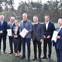 Starosta Goleniowski Tomasz Stanisławski uczestniczył dzisiaj w uroczystym podpisaniu umów na dofinansowanie inwestycji z funduszy Województwa Zachodniopomorskiego przeznaczonych na poprawę i modernizację infrastruktury sportowej w powiecie goleniowskim.