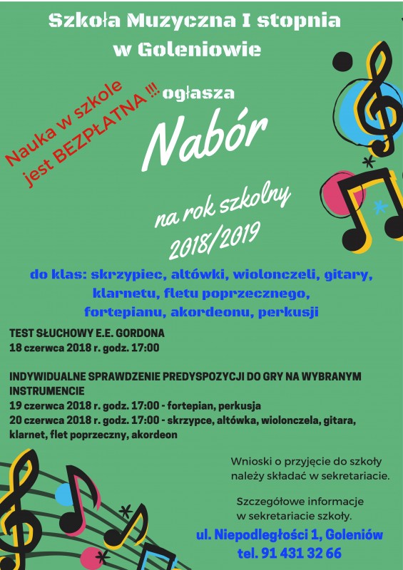 » Nabór na rok szkolny 2018/2019 - indywidualne sprawdzenie predyspozycji gry na wybranym instrumencie