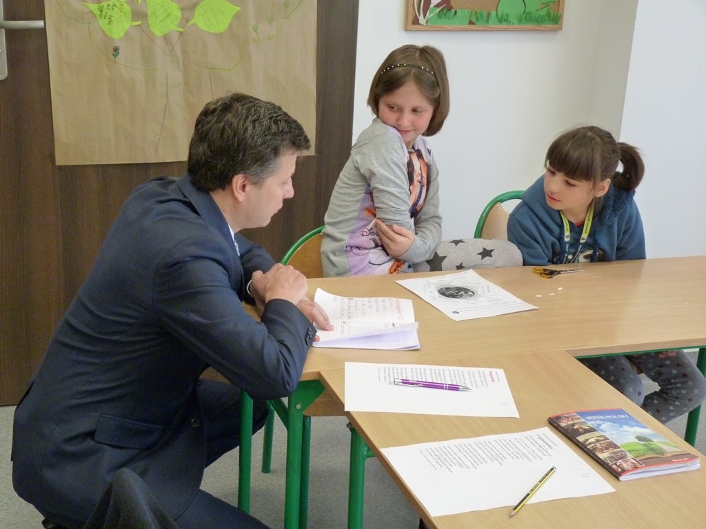 Podczas krótkiej wizyty mogliśmy pochwalić się naszą piękną, nową szkołą oraz porozmawiać z niecodziennym gościem. W imieniu społeczności szkolnej Jacek Bojko wręczył Panu Rzecznikowi aniołka, a Pan minister podarował każdemu uczniowi naszej szkoły upominek. Cieszą nas również ofiarowane książki Janusza Korczaka oraz plakat z prawami dziecka (podpisany przez Pana Rzecznika), który zawieszony na parterze będzie przypominał to ważne spotkanie.