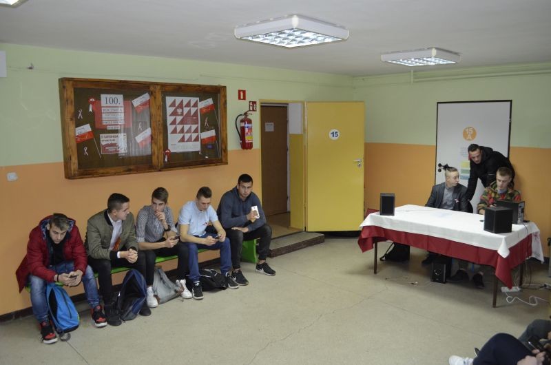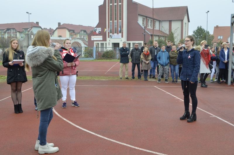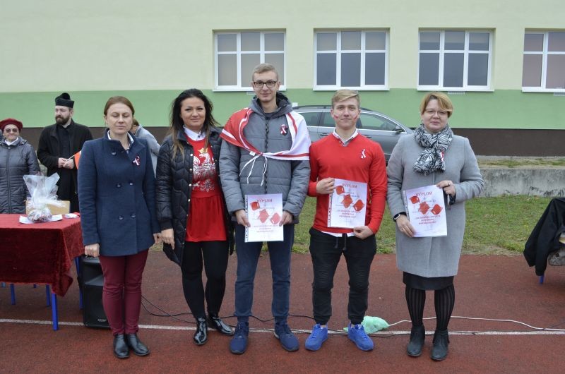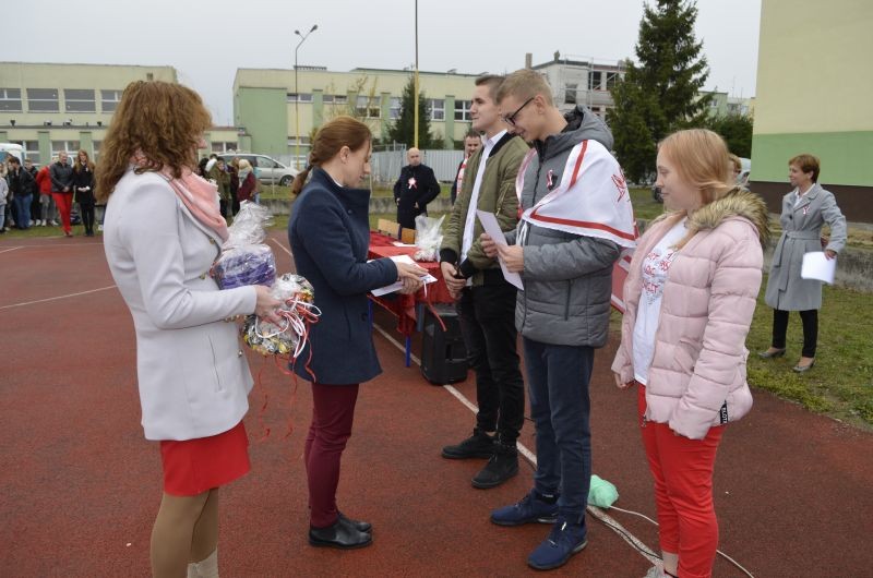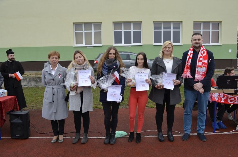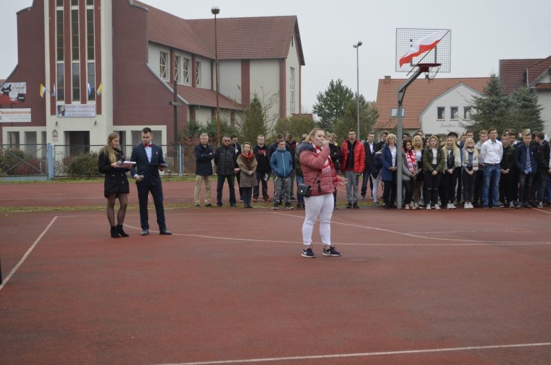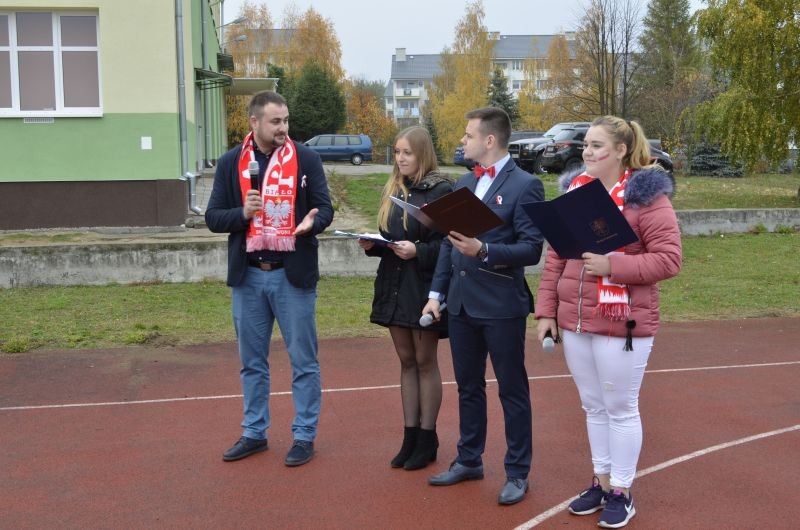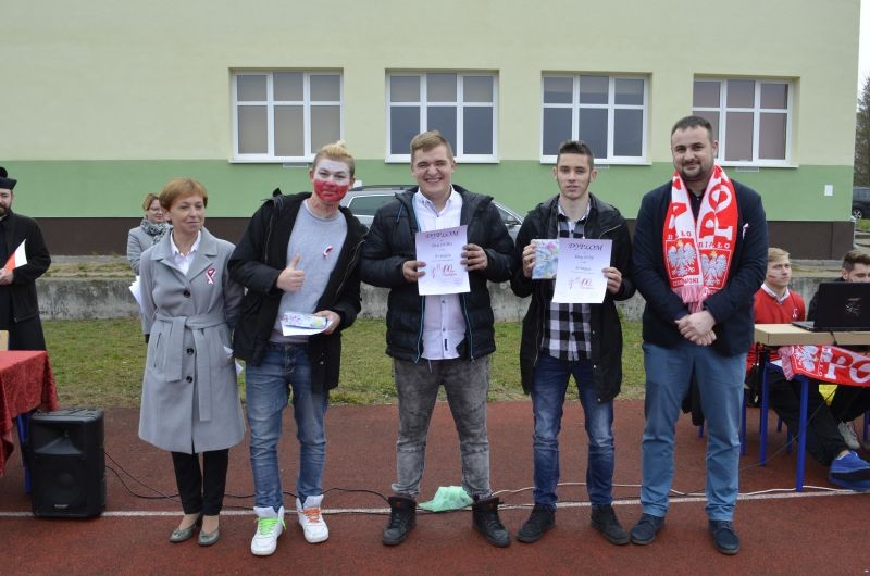 Obchody tej niezwykłej rocznicy rozpoczęły się na kilka tygodni przed 11 listopada - nauczyciele i uczniowie przygotowali gazetki oraz wystawy na temat święta odzyskania niepodległości. Odbyły się również konkursy - Szkolny Konkurs Pieśni i Poezji Patriotycznej, konkurs na plakat promujący 100. rocznicę odzyskania przez Polskę niepodległości, konkurs na hasło o tematyce niepodległościowej oraz konkurs matematyczny 100 zadań na 100. rocznicę odzyskania niepodległości. Ważnym punktem obchodów narodowego święta był uroczysty apel, który odbył się na szkolnym boisku. Spotkanie rozpoczęło się od przemówienia, które wygłosił wicedyrektor szkoły Pan Marcin Gałka. O godzinie 11:11 wszyscy zebrani zaśpiewali wspólnie czterozwrotkowy hymn Polski, biorąc tym samym udział w ogólnopolskiej akcji. Nie zabrakło również części artystycznej - uczennice naszej szkoły zaśpiewały piosenki o tematyce patriotycznej. Ostatnim punktem apelu było rozdanie nagród w konkursach związanych z odzyskaniem niepodległości. Z pewnością ten wzruszający apel na długo zostanie w naszej pamięci.