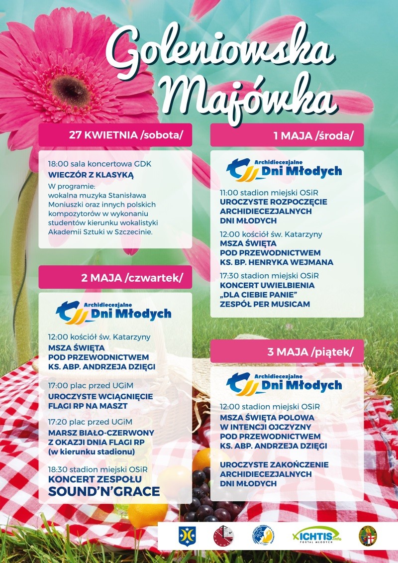 W imieniu organizatorów serdecznie zapraszamy do udziału w goleniowskich obchodach świąt majowych: Dzień Flagi (2.05), Rocznica Uchwalenia Konstytucji 3 Maja (3.05).