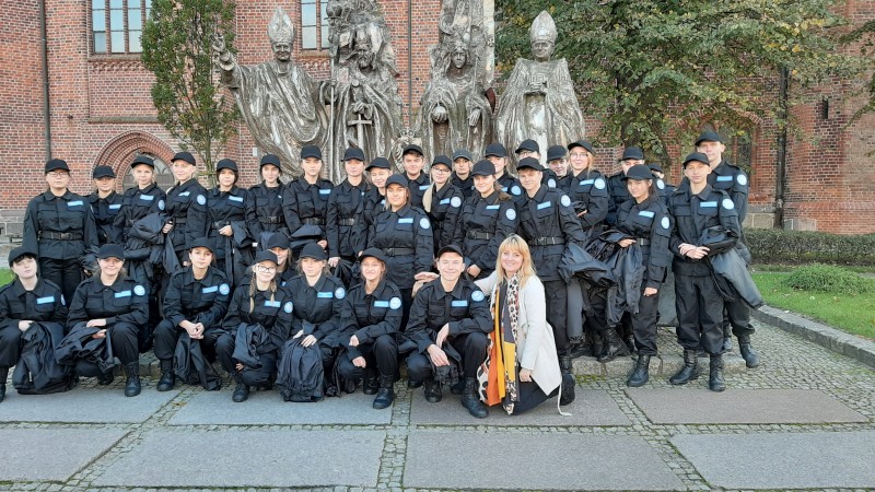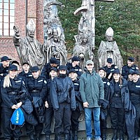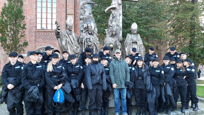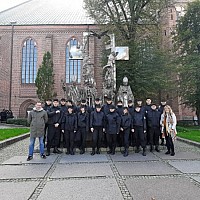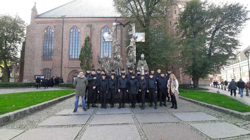 Tradycyjnie, jak co roku, klasy policyjne na początku października (w dniach od 7 do 9) wybrały się na trzydniowy obóz szkoleniowy. Tym razem zakotwiczyliśmy w Kołobrzegu, w ośrodku WIGA, w poniedziałek około 10 rano. Na początek – musztra i marsz do centrum miasta, do Katedry Wniebowzięcia Najświętszej Maryi Panny. Tam dla wszystkich klas odbyły się zajęcia „Katedra jako tekst kultury”. Uczniowie dzięki otrzymanym kartom pracy mogli samodzielnie odszukać zabytki kultury sakralnej ze średniowiecza, opisać je i poddać próbie interpretacji. Szczególnym rarytasem sztuki gotyckiej, który zrobił wrażenie na licealistach był siedmioramienny świecznik w kształcie menory o wysokości 4 metrów- pochodzi z 1327 roku i jest jednym z pięciu takich na świecie. Dyskutowaliśmy nad jego bogatą symboliką. Mam nadzieję, że widać atmosferę pracy i skupienia na zdjęciach.