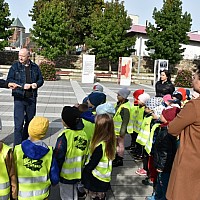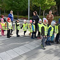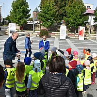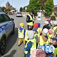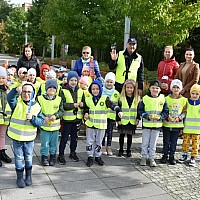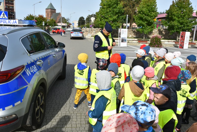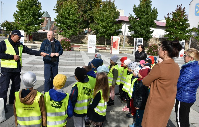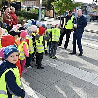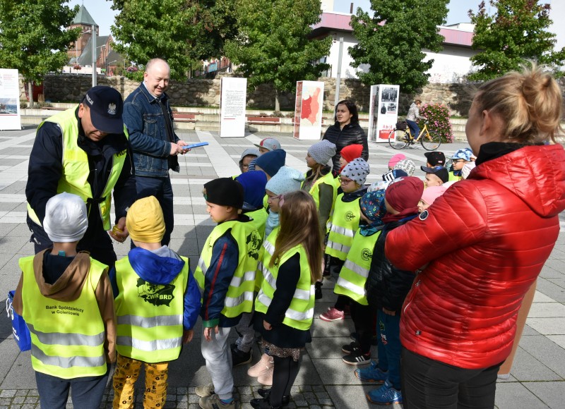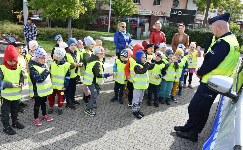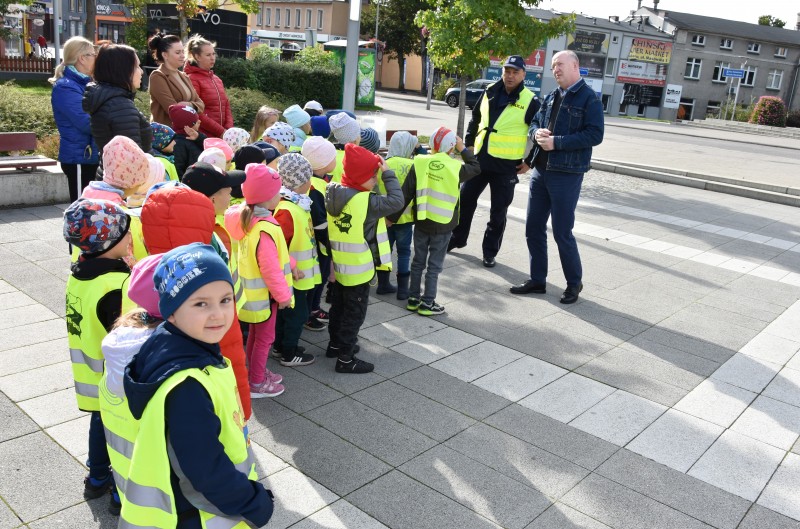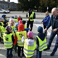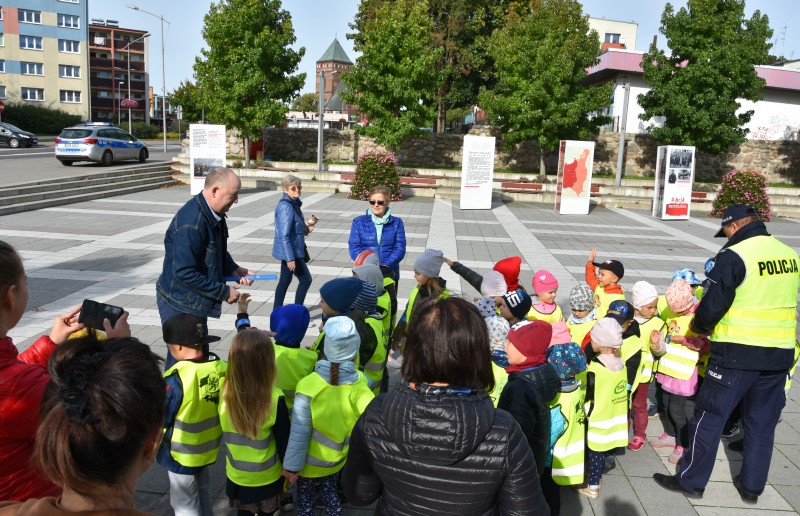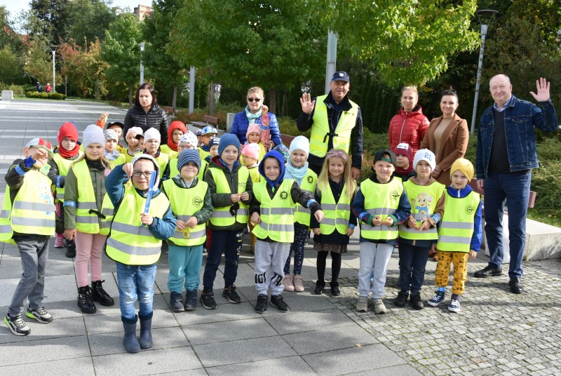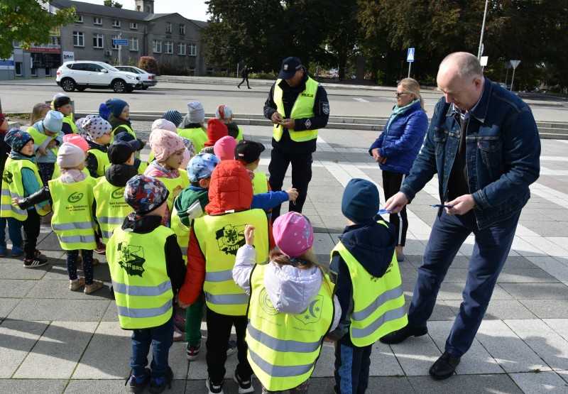 "Ogólnopolskiego Dnia Odblasków" Starosta Goleniowski Tomasz Stanisławski rozdawał na Plantach w Goleniowie elementy odblaskowe przedszkolakom z pobliskiego "Misiowego Przedszkola" z ulicy Pocztowej.
