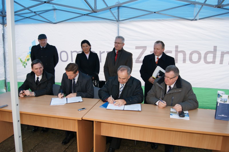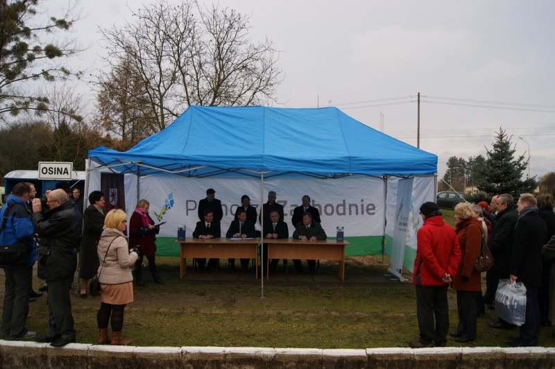 Dziś, 18 października, na peronie w Osinie marszałek województwa zachodniopomorskiego Olgierd Geblewicz wraz z wicemarszałkiem Andrzejem Jakubowskim podpisali dokument w sprawie przebudowy przystanków kolejowych w Osinie i Żabowie. Ze strony Oddziału Centrum Realizacji Inwestycji PKP PLK S.A. w Szczecinie podpisy złożyli dyrektor Józef Matuszczak i zastępca dyrektora Andrzej Piechocki.